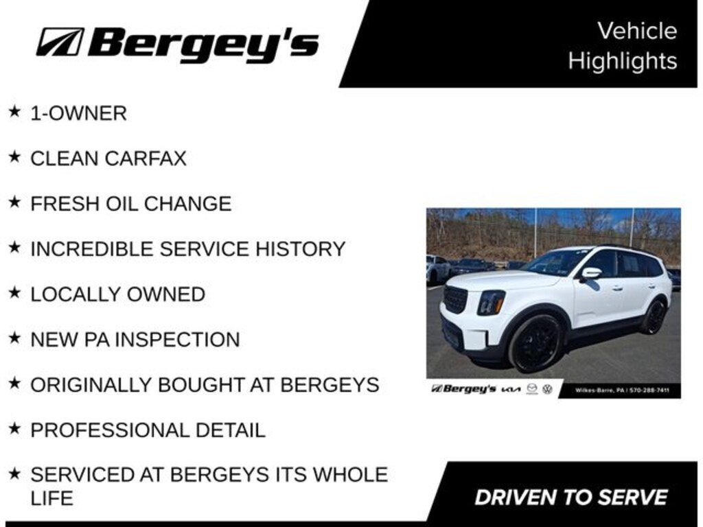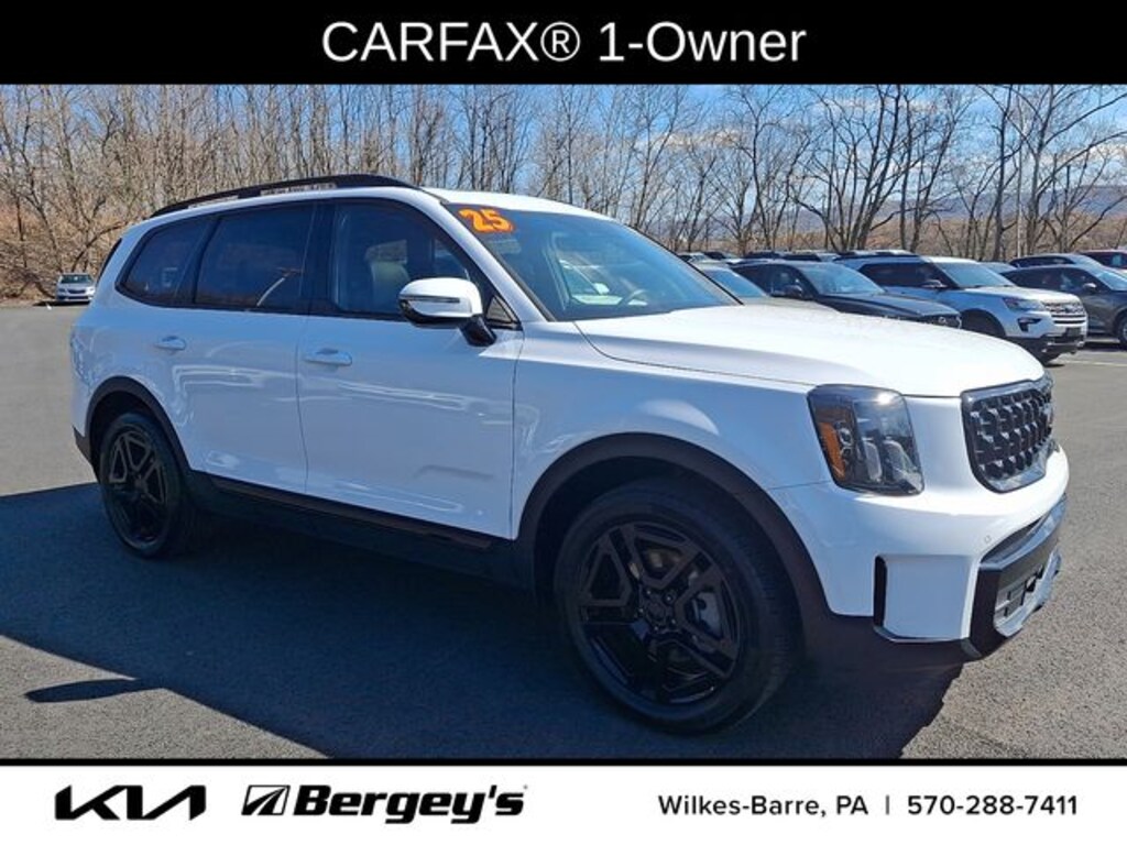 Certified. Glacial White Pearl 2025 Kia Telluride SX X-Line AWD 8-Speed Automatic 3.8L V6 DOHC 1-OWNER, CLEAN CARFAX, FRESH OIL CHANGE, INCREDIBLE SERVICE HISTORY, LOCALLY OWNED, NEW PA INSPECTION, ORIGINALLY BOUGHT AT BERGEYS, PROFESSIONAL DETAIL, SERVICED AT BERGEYS ITS WHOLE LIFE.