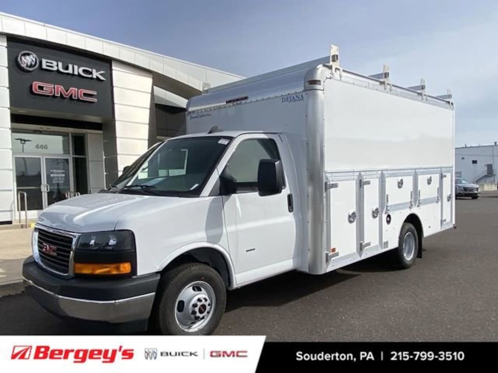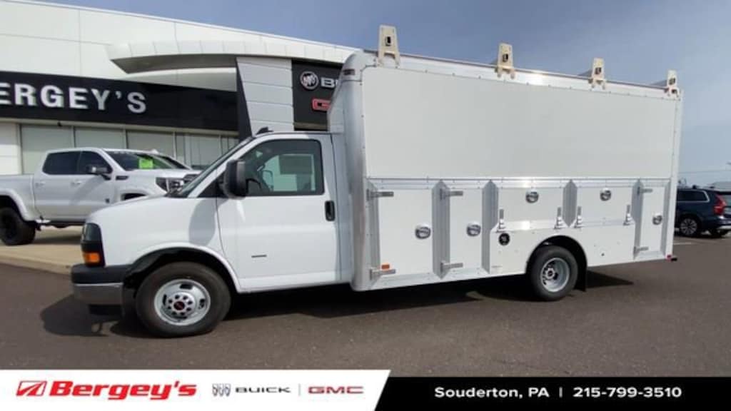 Summit White 2025 GMC Savana 3500 Work Van RWD 8-Speed Automatic 6.6L V8 Price includes $35,508 dealer added accessories.