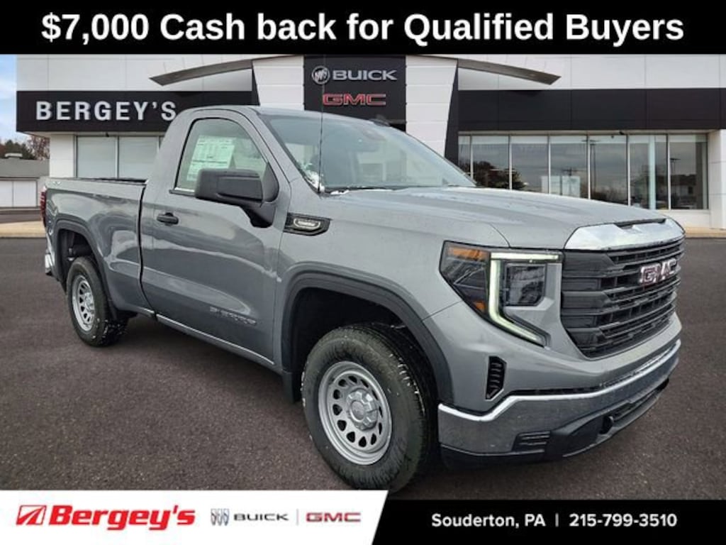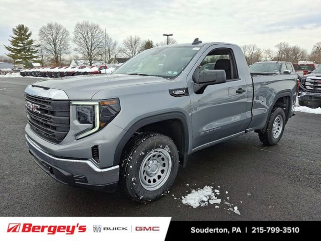Sterling Metallic 2026 GMC Sierra 1500 Pro 4WD 8-Speed Automatic 2.7L I4 Turbocharged DOHC 16V LEV3-SULEV30 310hp Price includes: $1750 - Bonus Cash. Exp. 03/02/2026 $1750 - Purchase Allowance. Exp. 03/02/2026 $3500 - Trade Assistance. Exp. 03/02/2026