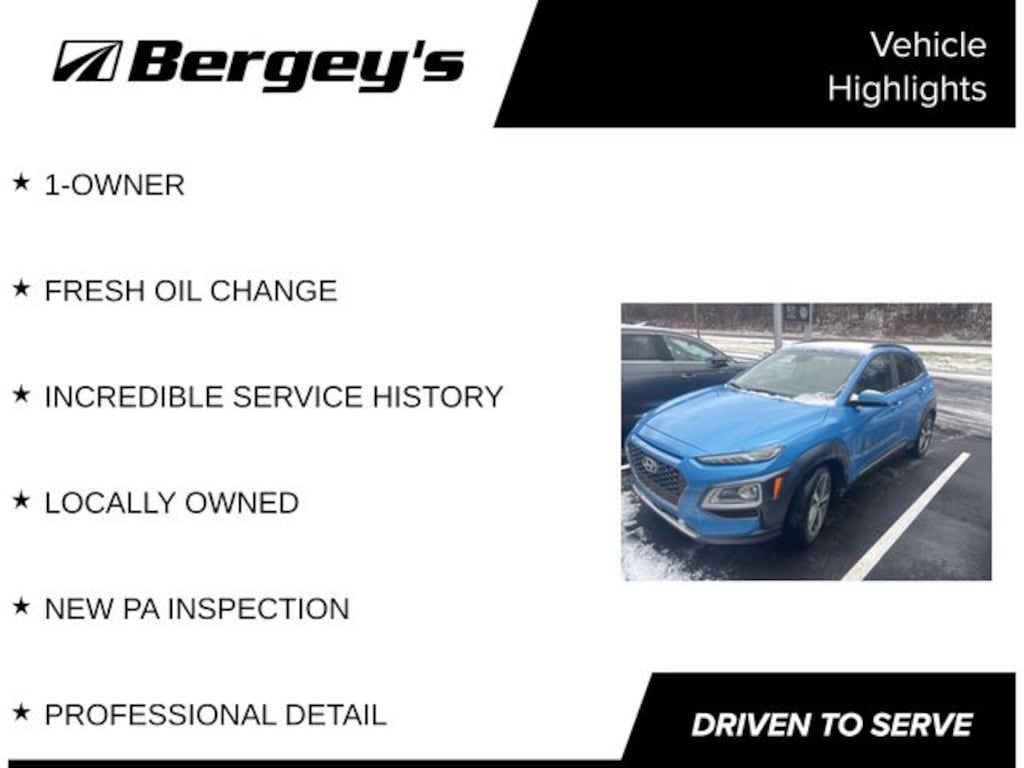Surf Blue 2019 Hyundai Kona Ultimate AWD 7-Speed Automatic 1.6L I4 DGI 1-OWNER, FRESH OIL CHANGE, INCREDIBLE SERVICE HISTORY, LOCALLY OWNED, NEW PA INSPECTION, PROFESSIONAL DETAIL.