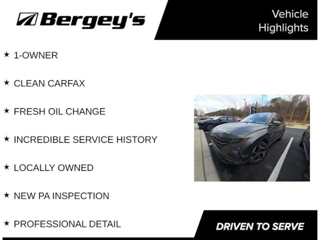 Amazon Gray 2022 Hyundai Tucson Limited AWD 8-Speed Automatic with SHIFTRONIC 2.5L I4 DGI DOHC 16V LEV3-ULEV70 187hp 1-OWNER, CLEAN CARFAX, FRESH OIL CHANGE, INCREDIBLE SERVICE HISTORY, LOCALLY OWNED, NEW PA INSPECTION, PROFESSIONAL DETAIL, AWD.