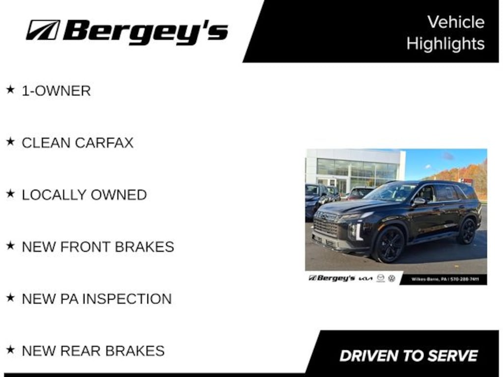 Abyss Black Pearl 2024 Hyundai Palisade XRT AWD 8-Speed Automatic with SHIFTRONIC V6 1-OWNER, CLEAN CARFAX, LOCALLY OWNED, NEW FRONT BRAKES, NEW PA INSPECTION, NEW REAR BRAKES.