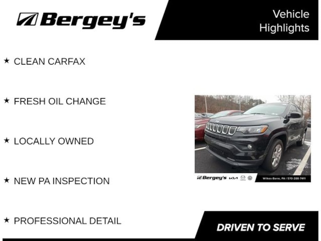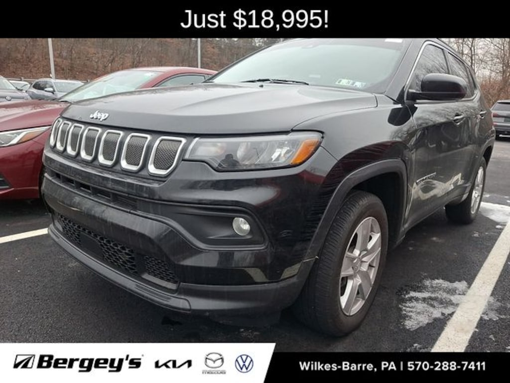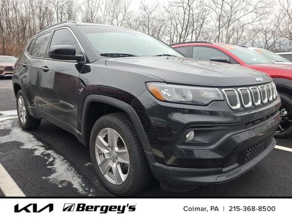 Diamond Black Crystal Pearlcoat 2022 Jeep Compass Latitude 4WD 9-Speed 948TE Automatic 2.4L I4 CLEAN CARFAX, FRESH OIL CHANGE, LOCALLY OWNED, NEW PA INSPECTION, PROFESSIONAL DETAIL, 4WD.