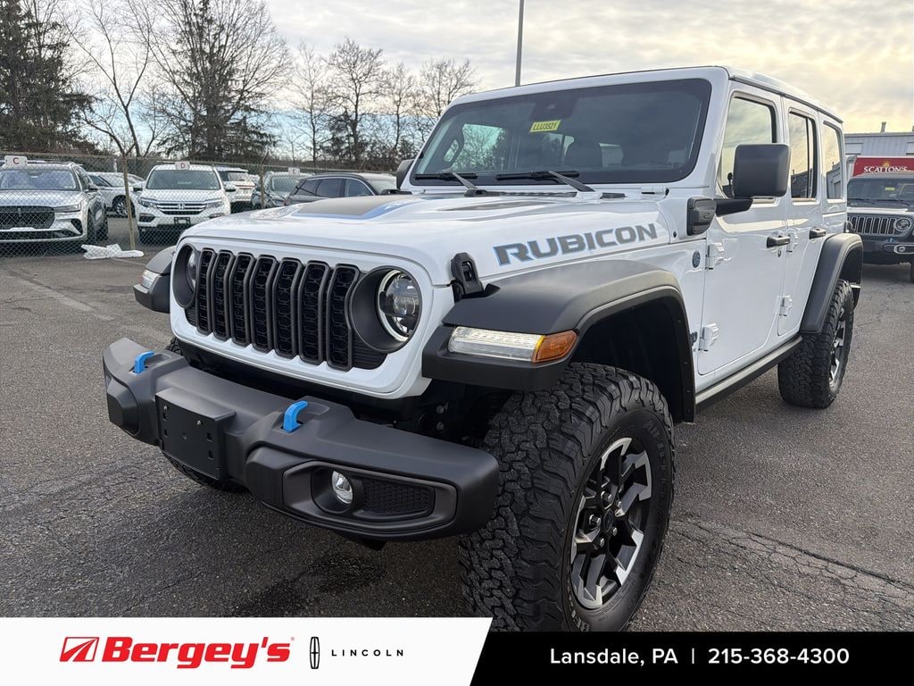 2024 JEEP WRANGLER RUBICON 4XE SKYTOP 2.0L 4WD W/ CONVIENCE PKG! ONE OWNER! CLEAN CARFAX! ORIGINAL MSRP $66,405! HEATED FRONT SEATS, HEATED STEERING WHEEL, 17 WHEELS! BALANCE OF FACTORY WARRANTY! PA State Inspection & First Oil Change At Bergeys! Bright White Exterior, Black Cloth Interior. Vehicle Features: 2.0L I4 DOHC DI TURBO PHEV Engine, 8-Speed Automatic Transmission, 4 Wheel Drive, Heated Front Seats, Remote Start System, Heated Steering Wheel, Jeep 4XE Power Box Delete, Sky One-Touch Power Top, Removeable Rear Quarter Windows, Rear Window Defroster/Wiper/Washer, Power-Top Quarter Window Storage Bag, 17 x 7.5 Machined Wheels w/ Black Pockets, LED Premium Reflector Headlamps, Daytime Running Lamp LED Accents, Front LED Fog Lamps, LED Tail lamps, Integrated Window Antenna, Blue Tow-Hooks, Uconnect Navigation w/ 12.3 Touch Screen Display, Apple CarPlay, Google Android Auto, Satellite Radio Ready, 8 Speakers, Hands Free Phone And Audio, Jeep Connect 4G LTE Wi-Fi Hot Spot, Ambient LED Interior Lighting, 6-Way Manual Adjustable Driver Seat, Air Conditioning w/ Automatic Temperature Control, 3rd Gen Heavy-Duty Dana 44 Front Axle, Dana M220 Wide Full Floating Rear Axle, Tru-Lok Front And Rear Axle, 4:10 Rear Axle Ratio, Off-Road Plus Mode, Performance Suspension, Rock Protection Sill Rails, Fuel Tank Skid Plate Shield, Transfer Case Skid Plate Transmission Skid Plate, Regenerative Anti-Lock 4-Wheel Disc Brakes, Rear Back-Up Camera, Full-Speed Forward Collision Warning Plus, Adaptive Cruise Control w/ Stop, Hill-Start Assist, Advanced Brake Assist, Advanced Multistage Front Airbags, Supplemental Front Seat Mounted Side Airbags, Supplemental Side Airbags, Windshield w/ Coring Gorilla Glass, Battery Charge Indicator, Remote Keyless Entry, Receiver Hitch, 7-Pin And 4- Pin Wiring Harness. Financing Available! Extended Service Contract Options Available! Please call or email to confirm vehicle availability. Check out our website for the complimentary Carfax report!