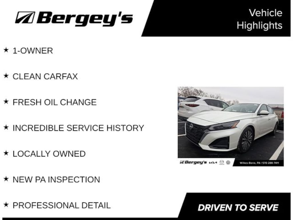 Pearl White Tricoat 2023 Nissan Altima 2.5 SV AWD CVT with Xtronic 2.5L 4-Cylinder DOHC 16V 1-OWNER, CLEAN CARFAX, FRESH OIL CHANGE, INCREDIBLE SERVICE HISTORY, LOCALLY OWNED, NEW PA INSPECTION, PROFESSIONAL DETAIL, CVT with Xtronic.