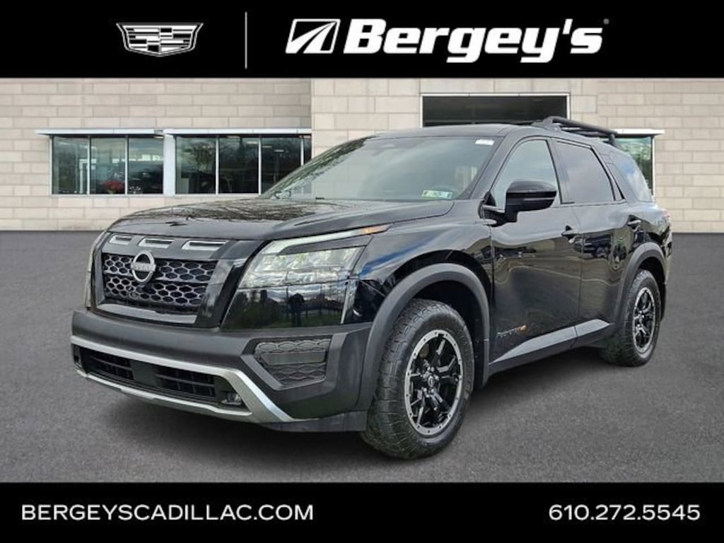 JUST TRADED!! 1-OWNER, CLEAN CARFAX, FRESH OIL CHANGE, LOCALLY OWNED, NEW PA INSPECTION, PROFESSIONAL DETAIL, ORIGINAL MSRP $44,670, 4WD 3rd row seats: bench, 4-Wheel Disc Brakes, 6 Speakers, ABS brakes, Air Conditioning, Alloy wheels, AM/FM radio: SiriusXM, Auto High-beam Headlights, Automatic temperature control, Axle Ratio: 4.334, Black Splash Guards (Set of 4), Brake assist, Delay-off headlights, Driver door bin, Driver vanity mirror, Dual front impact airbags, Dual front side impact airbags, Electronic Stability Control, Emergency communication system: NissanConnect Services, Four wheel independent suspension, Front anti-roll bar, Front Bucket Seats, Front Center Armrest, Front dual zone A/C, Front fog lights, Front reading lights, Fully automatic headlights, Heated door mirrors, Heated Front Bucket Seats, Heated front seats, Illuminated entry, Knee airbag, Leather steering wheel, Leatherette Seating Surfaces, Low tire pressure warning, NissanConnect featuring Apple CarPlay and Android Auto, Occupant sensing airbag, Outside temperature display, Overhead airbag, Overhead console, Panic alarm, Passenger door bin, Passenger vanity mirror, Power door mirrors, Power driver seat, Power steering, Power windows, Radio data system, Radio: AM/FM Audio System w/NissanConnect, Rear air conditioning, Rear anti-roll bar, Rear Parking Sensors, Rear reading lights, Rear side impact airbag, Rear window defroster, Rear window wiper, Reclining 3rd row seat, Remote keyless entry, Rock Creek AS Floor Liners & Cargo Area Protector, Roof rack, Security system, Speed control, Speed-sensing steering, Split folding rear seat, Spoiler, Steering wheel mounted audio controls, Tachometer, Telescoping steering wheel, Tilt steering wheel, Traction control, Trip computer, Turn signal indicator mirrors, Variably intermittent wipers, Wheels: 18 Beadlock Styled Design, Clean CARFAX. CARFAX One-Owner. Super Black 2023 Nissan Pathfinder Rock Creek 4WD 9-Speed Automatic V6
