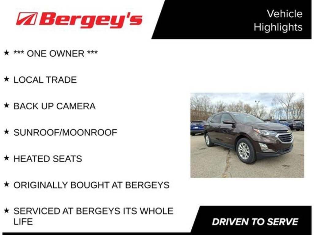 *** ONE OWNER ***, LOCAL TRADE, BACK UP CAMERA, SUNROOF/MOONROOF, HEATED SEATS, ORIGINALLY BOUGHT AT BERGEYS, SERVICED AT BERGEYS ITS WHOLE LIFE, AWD. Certified. Certification Program Details: *6-Month/6,000-Mile Bumper-to-Bumper Limited Warranty*, whichever comes first, in addition to any remaining original factory Bumper-to-Bumper warranty. See participating dealer and warranty booklet for limited warranty eligibility and coverage details, including limitations and exclusions. *Except for non-GM vehicles in the State of California, where coverage will be provided by a vehicle service contract. Odometer is 8338 miles below market average!