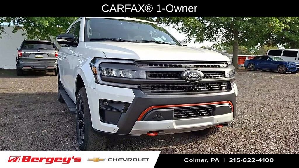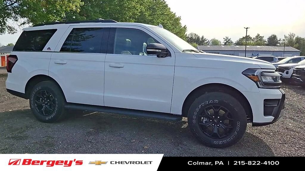 Get ready to take your full size SUV game up a notch around Bucks and Montgomery County from Colmar to Doylestown and Boyertown to Exton with the 2023 Ford Expedition Timberline. This rugged version of the Expedition comes packed with serious offroad chops (10.6 of ground clearance, hill descent control, skid plates) and a high output 3.5L EcoBoost V6 producing 440hp / 510lbft of torque paired with a 10speed automatic and 4WD. Whether you're navigating weekend escapes or just cruising the local roads, the Timberline doesn't sacrifice comfort you'll find tech like a large touchscreen, premium seating and plenty of space for your crew (up to 8) and gear. With bold styling elements like blacked out trim, offroad tires and signature Timberline badging, this SUV blends everyday refinement with trail ready capability. It's the perfect fit if you're looking for a versatile ride that handles both suburban commutes and rugged getaways in Bucks and Montgomery Counties.