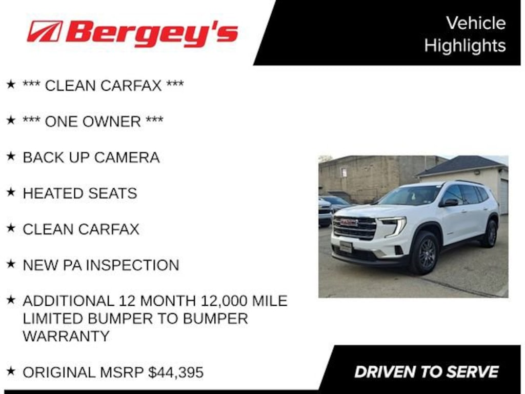 Elevate your driving experience with the premium features that come standard on this Acadia, including the Bose Premium 12-Speaker System, Apple CarPlay/Android Auto integration, and a 15 Diagonal Premium GMC Infotainment System. Enjoy the convenience of a Power Liftgate, Heated Steering Wheel, and Heated Front Seats, as well as advanced safety technologies like Automatic Emergency Braking and Lane Keep Assist.
